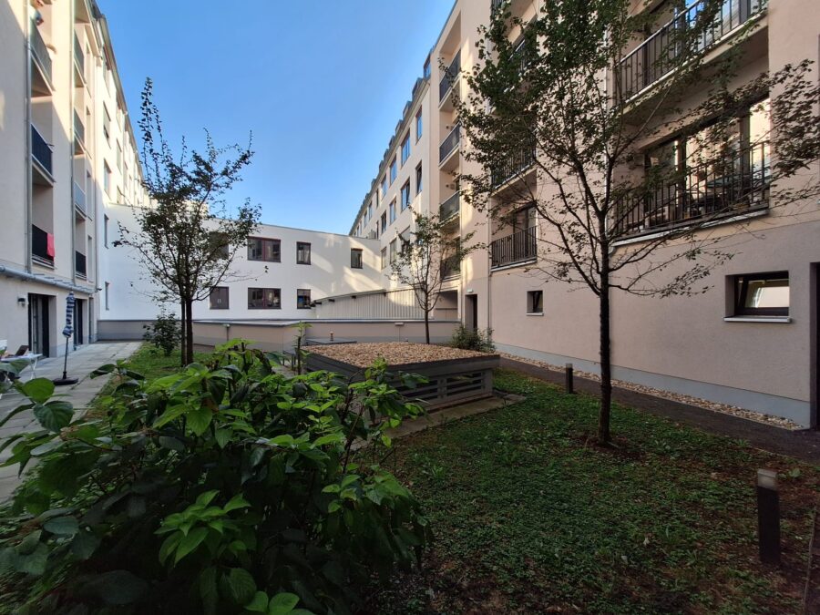 Fürs konzentrierte Lernen oder gemeinsame Projekte steht dir eine Learning Lounge zur Verfügung. Wenn du einfach mal durchatmen willst, lädt der ruhige Innenhof zum Entspannen ein.